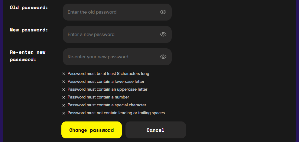 Press ‘Change password’ to save the updates.